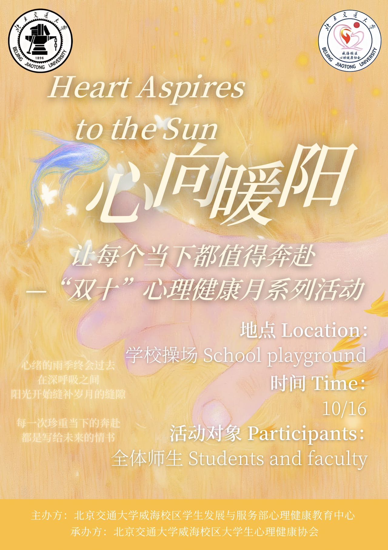 【心向暖阳,奔赴每一个值得的当下!】北交大威海校区“双十”心理健康月系...