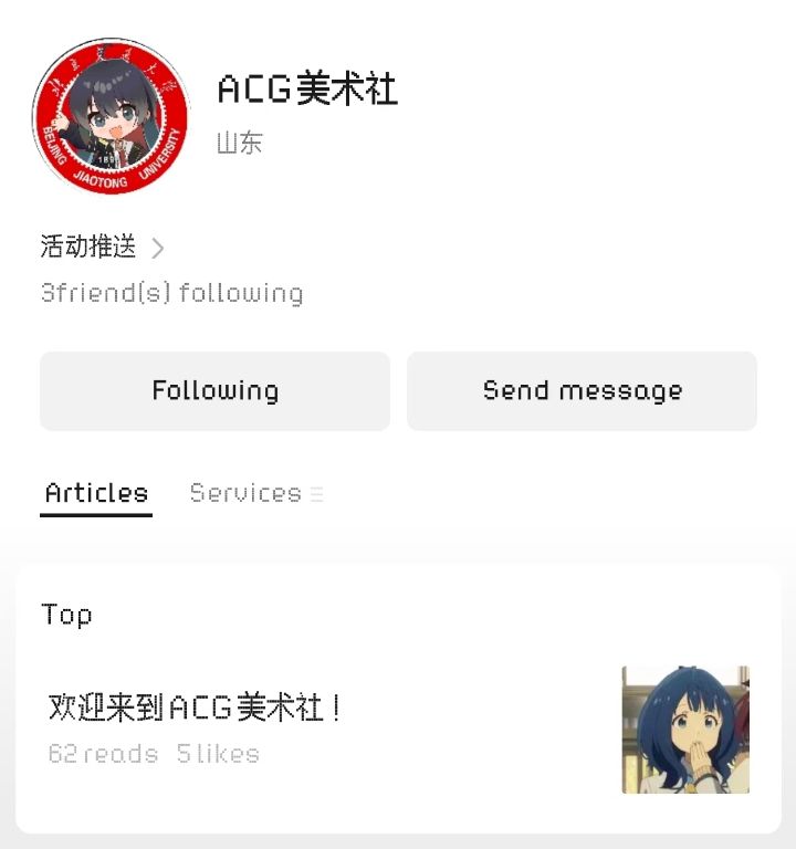 北京交通大学(威海校区)ACG美术社,前身为洋葱动漫社,在一些神秘力量的干预下,我们更名为ACG美术社。